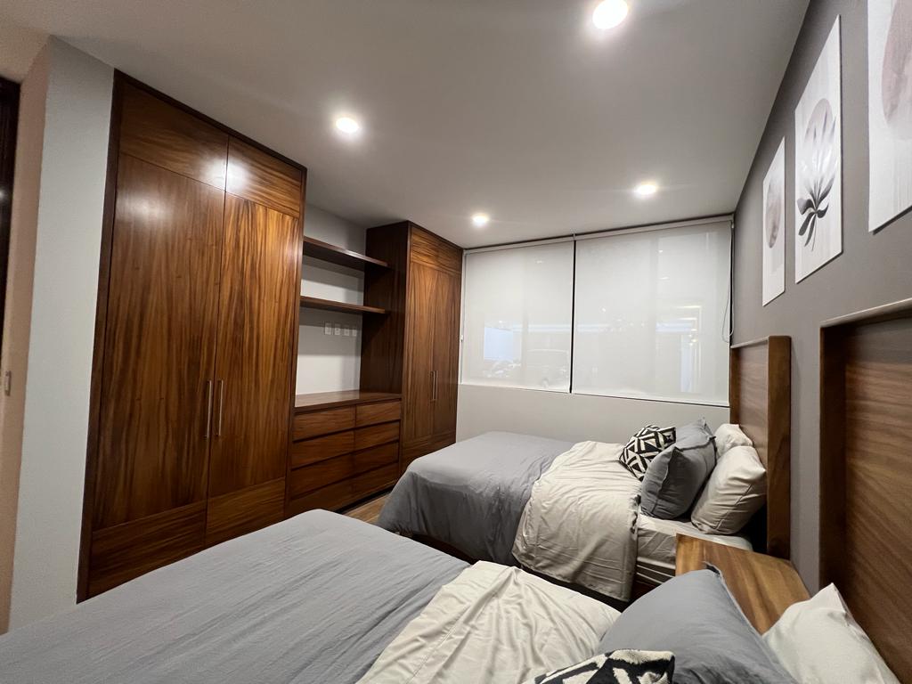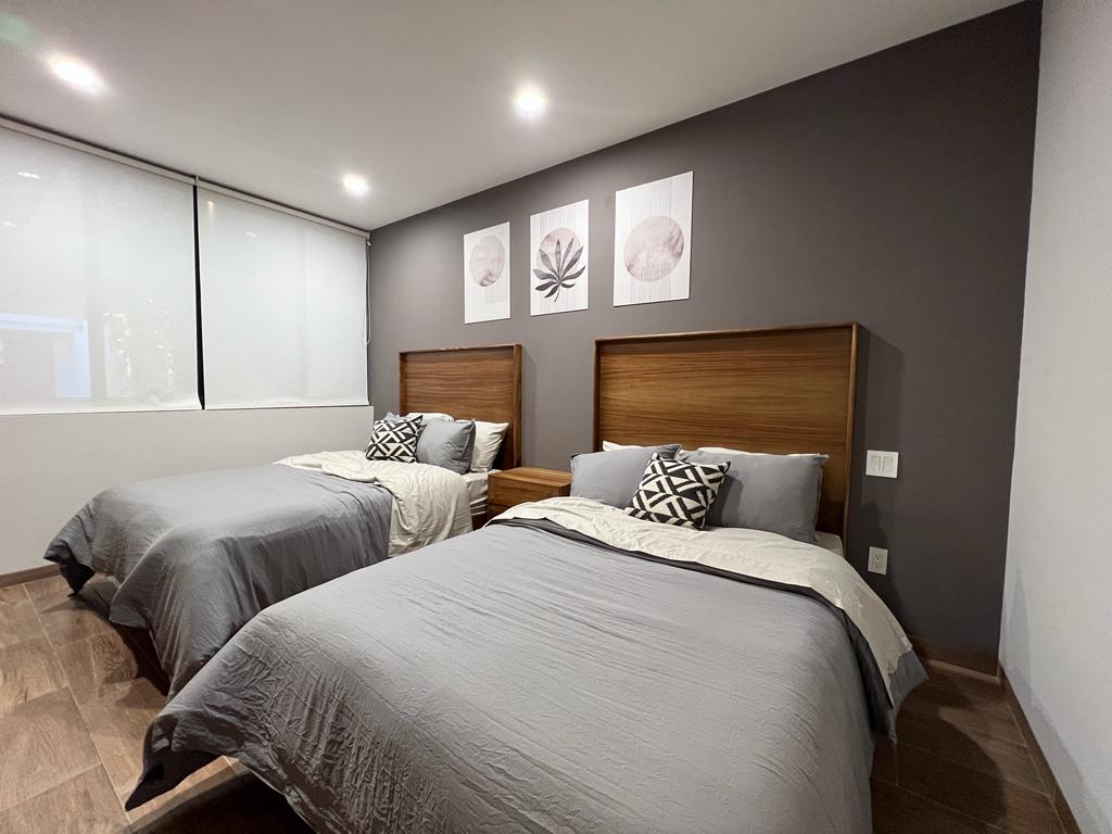(Recamara secundaria con 2 camas matrimoniales, closet y vestidor